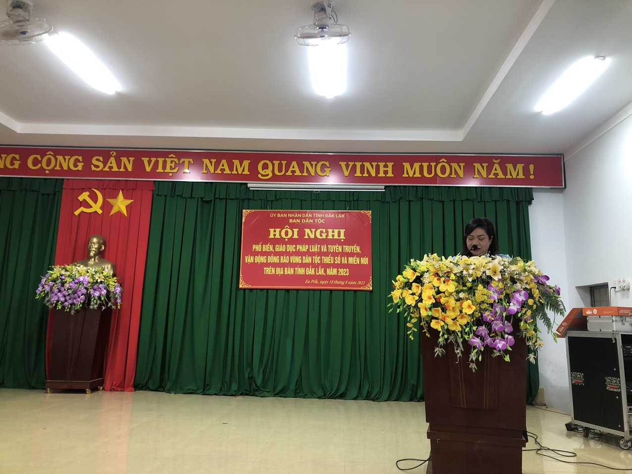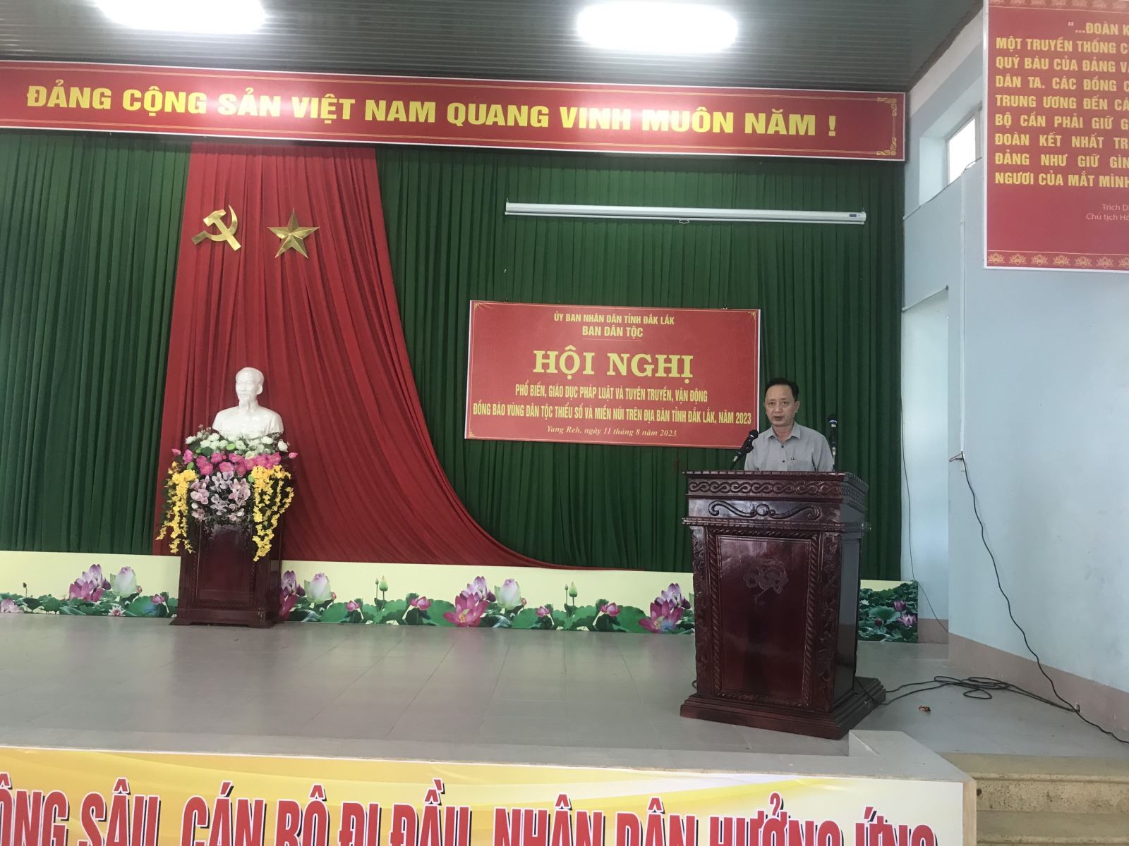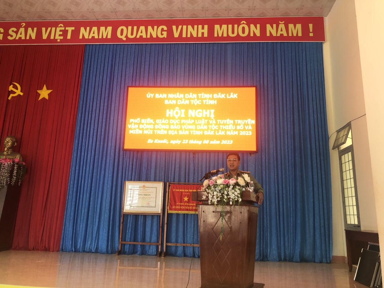 Trong tháng 8 năm 2023, Ban Dân tộc đã tổ chức 05 Hội nghị phổ biến, giáo dục pháp luật và tuyên truyền, vận động đồng bào dân tộc thiểu số trên địa bàn tỉnh Đắk Lắk, năm 2023 gồm: Công chức Tư pháp - Hộ tịch, công chức Văn hóa -Xã hội ở xã vùng đồng bào DTTS và miền núi; Bí thư, phó bí thư chi bộ, Trưởng, phó thôn, buôn, người có uy tín và người dân ở vùng đồng bào dân tộc thiểu số và miền núi thuộc các xã Cư Pơng, huyện Krông Búk, xã Ea Bar, huyện Buôn Đôn, xã Yang Reh, huyện Krông Bông, thị trấn Ea Pốk, huyện Cư M’gar và xã Ea Knuếc, huyện Krông Pắk, với hơn 498 đại biểu tham dự.