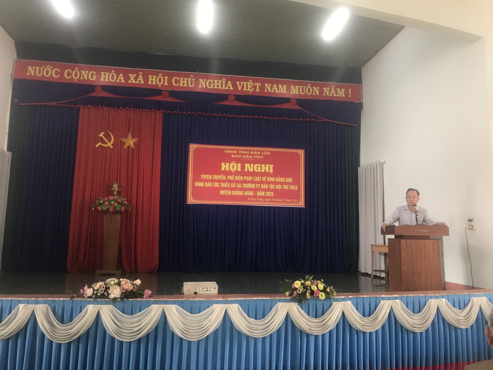 Trong các ngày 16, 18, 21 và 26/9/2023, Ban Dân tộc tỉnh đã phối hợp với UBND các huyện Krông Năng, Krông Búk, Ea Kar và M’Drắk tổ chức 04 Hội nghị tuyên truyền, phổ biến pháp luật về Bình đẳng giới tại các Trường Phổ thông dân tộc nội trú Trung học cơ sở trên địa bàn các huyện.