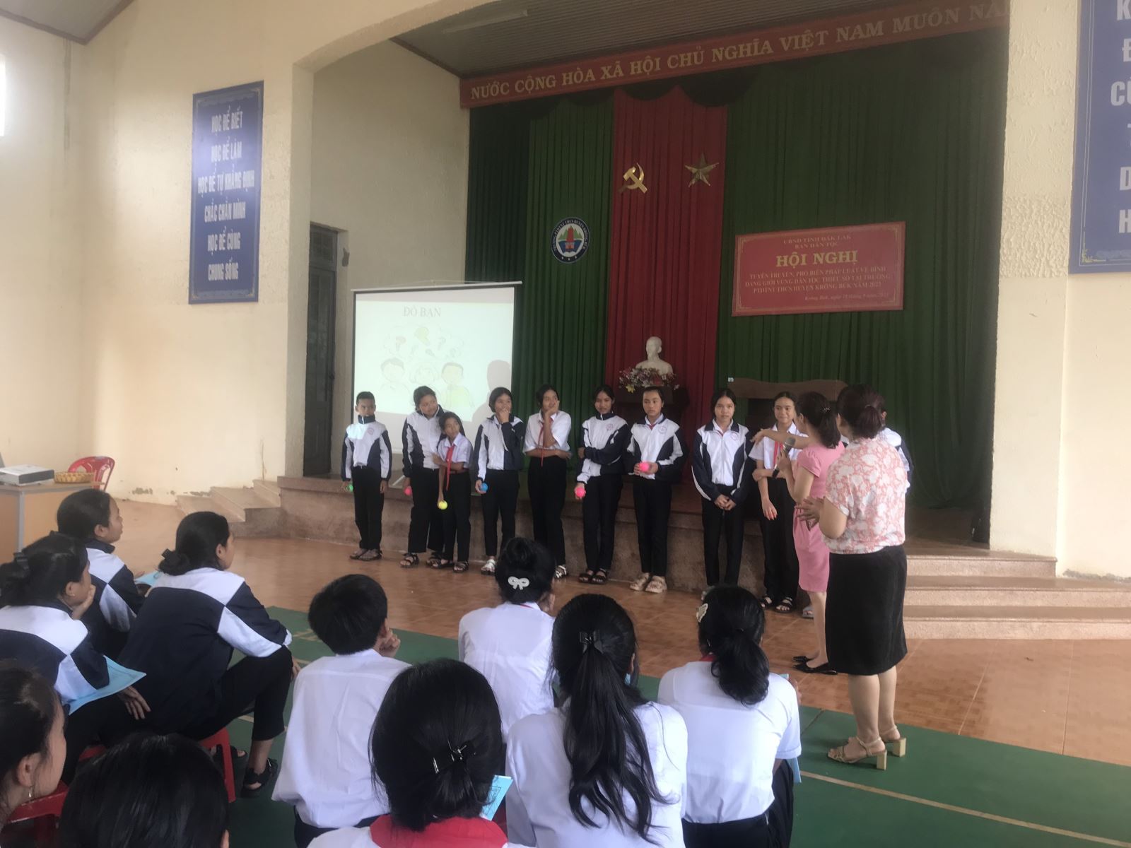 Tham dự Hội nghị tuyên truyền, phổ biến gồm có Ban Giám hiệu, cán bộ, giáo viên và toàn bộ học sinh các khối lớp 6,7,8,9 của các Trường Phổ thông dân tộc nội trú Trung học cơ sở các huyện M’Drắk, Ea Kar, Krông Búk và Krông Năng với khoảng hơn 600 học sinh.