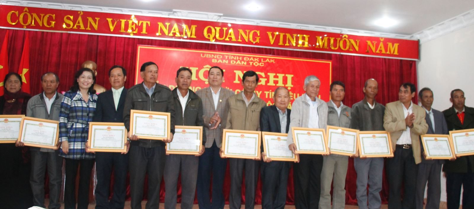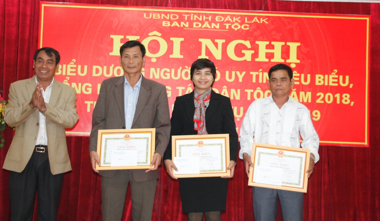 Nhân dịp này, Ban Dân tộc đã biểu dương, tặng Giấy khen cho 3 tập thể có nhiều đóng góp trong công tác dân tộc trên địa bàn tỉnh và 104 người có uy tín tiêu biểu trong vùng đồng bào DTTS, đại diện cho 1.020 người có uy tín trên địa bàn tỉnh.