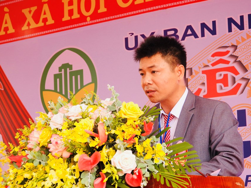 Ông Đào Đức Hoàn, Chủ tịch UBND xã Xuân Phú phát biểu tại buổi lễ.