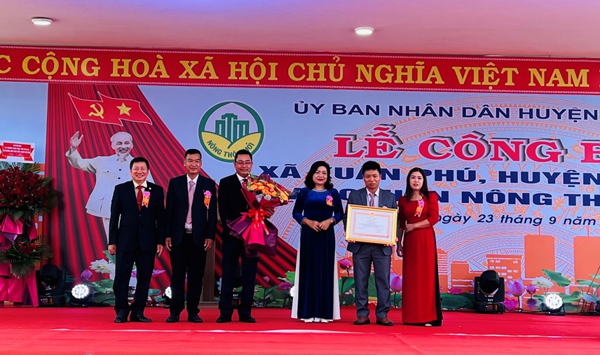 Đại diện Văn phòng điều phối NTM của tỉnh công bố Quyết định xã Xuân Phú đạt chuẩn NTM.