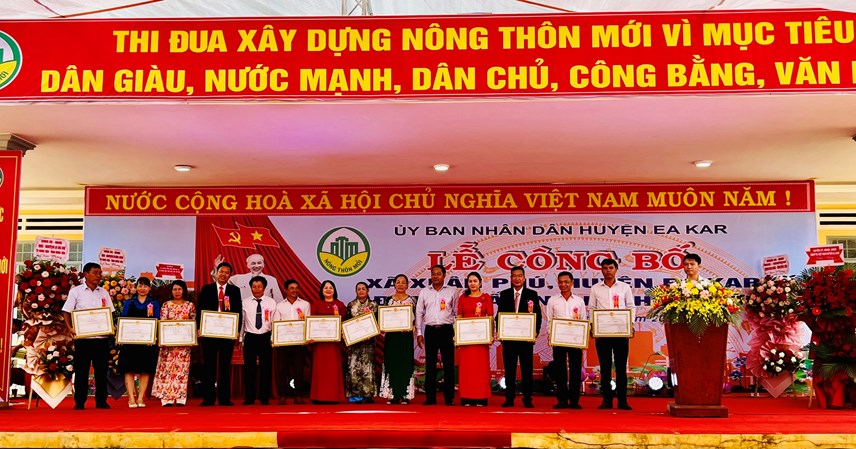 Nhân dịp này, UBND tỉnh đã tặng Bằng khen cho 1 tập thể, 5 cá nhân có thành tích xuất sắc trong phong trào thi đua “Đắk Lắk chung sức xây dựng nông thôn mới giai đoạn 2021-2025”. UBND huyện tặng khen cho 12 tập thể, 15 cá nhân.