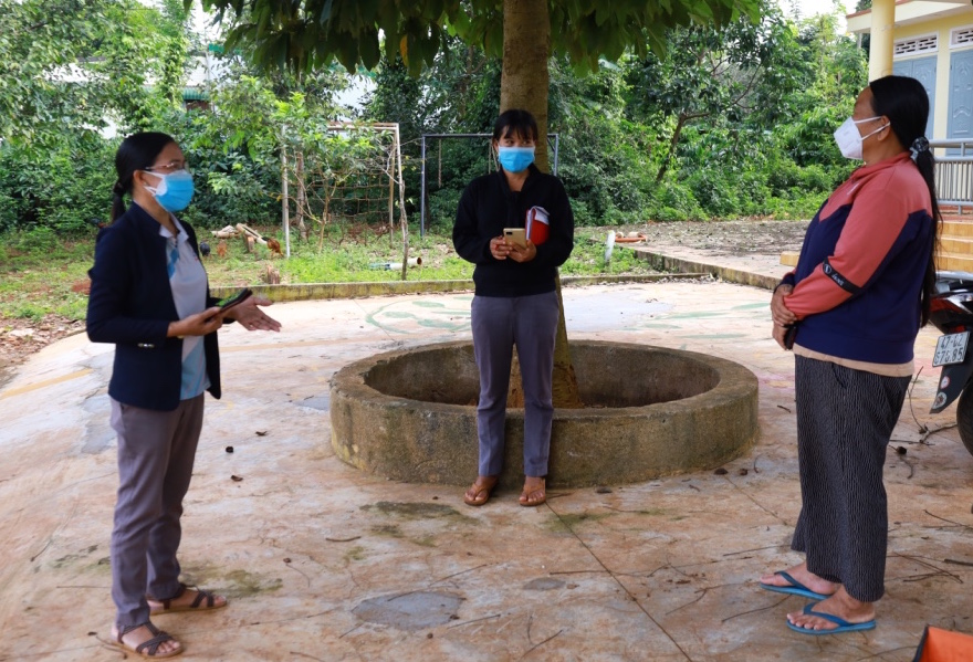 Bí thư Chi bộ buôn H Ngok Êban (bìa phải) chia sẻ về cách phòng, chống dịch gắn với tình hình thực tế tại buôn làng.