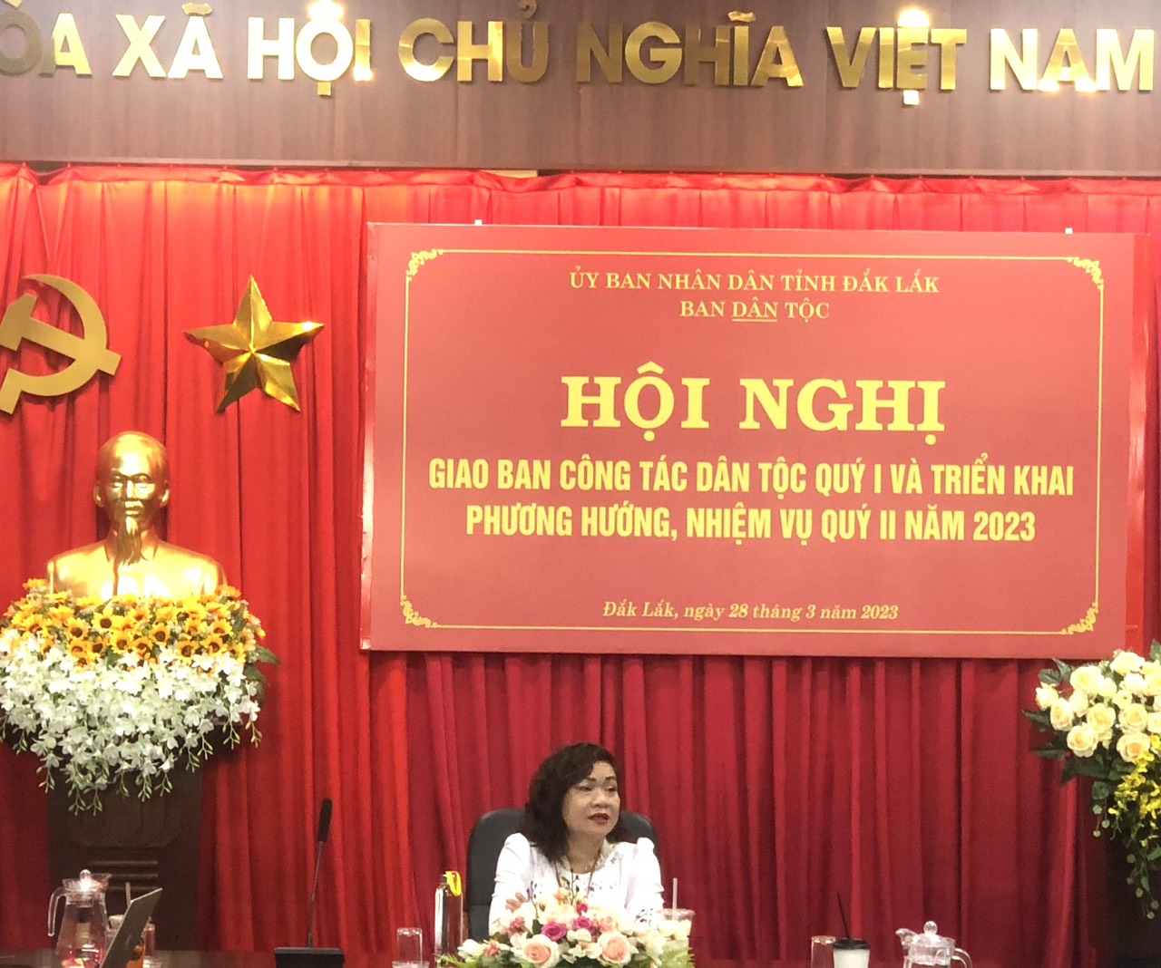 Kết luận tại Hội nghị Bà H’ Yâo Knul - Trưởng Ban Dân tộc ghi nhận và đánh giá cao những kết quả về công tác dân tộc đã đạt được trong quý I năm 2023. Nhằm triển khai có hiệu quả các chương trình chính sách trong quý II năm 2023, Trưởng Ban đề nghị các phòng chuyên môn và Phòng Dân tộc các huyện; lãnh đạo Văn phòng HĐND-UBND thị xã Buôn Hồ và thành phố Buôn Ma Thuột, một số nội dung sau: