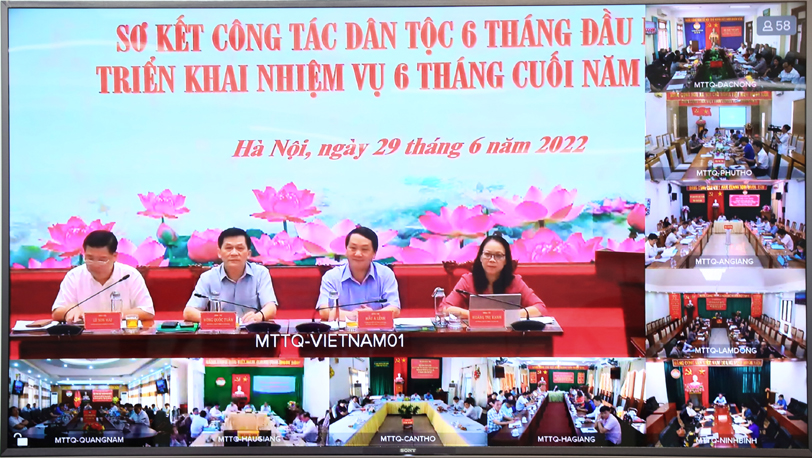 Hội nghị toàn quốc sơ kết công tác dân tộc 6 tháng đầu năm 2022 được tổ chức theo hình thức trực tuyến với sự tham dự của 53 tỉnh, thành phố trên toàn quốc