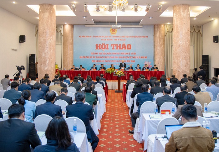 Phó Chủ tịch Thường trực Quốc hội đề nghị các đại biểu tham dự Hội thảo cùng nhau tập trung thảo luận về các nhiệm vụ phát triển kinh tế-xã hội, giải quyết vấn đề đất đai, ưu tiên đất sản xuất, tập trung giao rừng, khoán rừng để đồng bào có nguồn thu nhập; làm tốt công tác định canh, định cư ổn định đời sống đồng bào DTTS tại chỗ, phát huy tinh thần tự lực của người dân; khuyến khích doanh nghiệp đầu tư dạy nghề nâng cao chất lượng nguồn nhân lực; tăng cường đầu tư hạ tầng nông thôn, đặc biệt trong vùng đồng bào DTTS; phát triển văn hóa giáo dục, ưu tiên vùng sâu vùng xa vùng biên giới, tập trung xây dựng đời sống văn hóa mới, phát huy tinh hoa văn hóa truyền thống, loại bỏ hủ tục lạc hậu, xây dựng nếp sống văn minh, khôi phục lễ hội văn hóa truyền thống theo nhu cầu nguyện vọng của đồng bào…