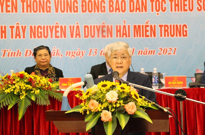 Nhân dịp Hội thảo, Bộ trưởng, Chủ nhiệm Đỗ Văn Chiến cũng đã thông tin tới các đại biểu 3 nội dung có tính chất thông điệp trong bài phát biểu của Ủy viên Bộ chính trị, Thủ tướng Chính phủ Nguyễn Xuân Phúc tại Đại hội Đại biểu toàn quốc các DTTS lần thứ II năm 2020: Trong hệ thống quan điểm hướng đến đồng bào các dân tộc anh em mà bác Hồ đã dặn, có 2 điều quan trọng nhất mà chúng ta không được phép quên, đó là “Đoàn kết các dân tộc và nâng cao thực chất đời sống của đồng bào”. Hãy truyền dạy cho con cháu muôn đời về lòng yêu nước của cha ông ta, về tinh thần tự hào, tự tôn dân tộc, về đức tính cần cù chịu khó, thật thà, tốt bụng, về ý chí dấn thân vì cộng đồng, đất nước; hãy khơi dậy tinh thần và khát vọng về một Việt Nam hùng cường vào năm 2045 trong đồng bào DTTS. Tiếp tục đổi mới tư duy, hành động quyết liệt với quyết tâm chính trị cao nhất, thực hiện thắng lợi Nghị quyết 88/2019/Qh14 và Nghị quyết 120/2020/QH14 của Quốc hội khóa 14 và Quyết định số 1409/QĐ-TTg của Thủ tướng Chính phủ ban hành kế hoạch triển khai Nghị quyết 120 của Quốc hội về phê duyệt chủ trương đầu tư Chương trình MTQG phát triển kinh tế-xã hội vùng đồng bào DTTS và miền núi giai đoạn 2021-2030.