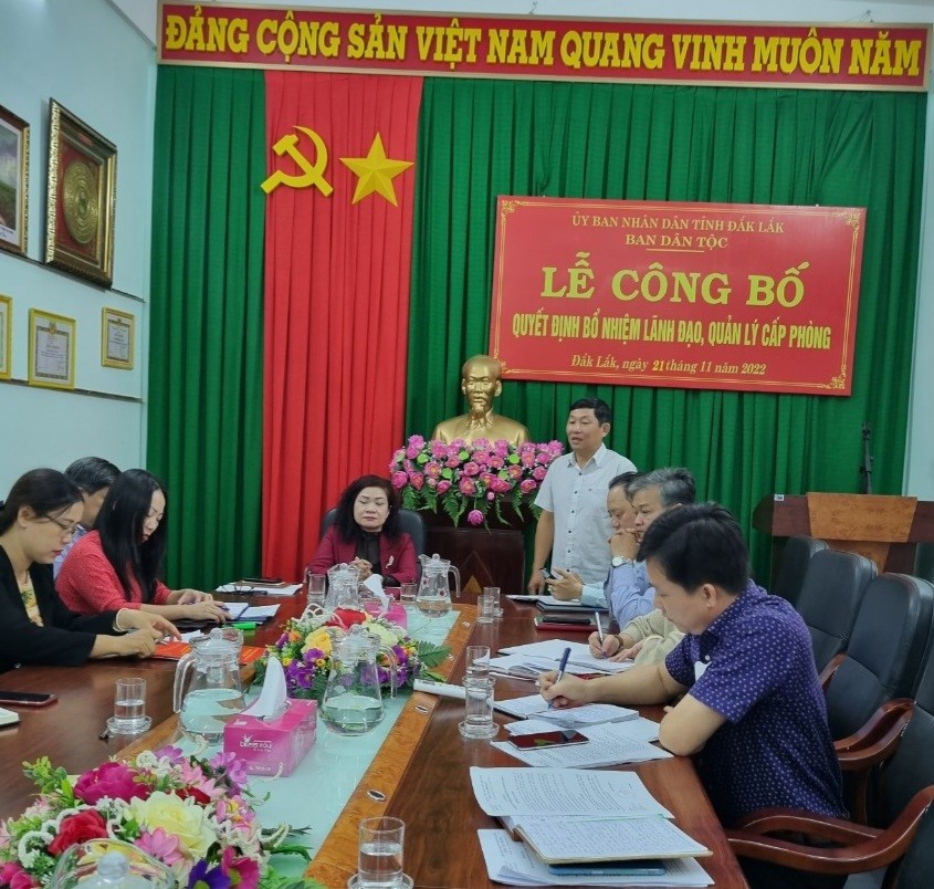 Ngày 21/11/2022, Ban Dân tộc đã tổ chức Lễ công bố quyết định tiếp nhận và bổ nhiệm công chức giữ chức vụ lãnh đạo, quản lý cấp phòng thuộc Ban Dân tộc