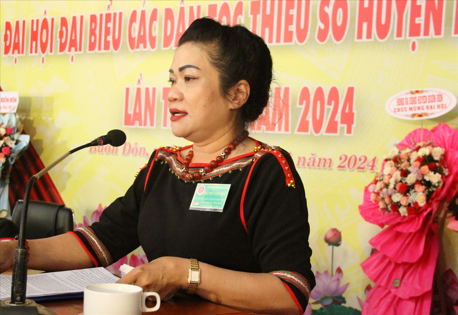 Phát biểu chị đạo Đại hội, bà H’Yâo Knul - Trưởng Ban Dân tộc, Phó trưởng Ban Chỉ đạo Đại hội DTTS tỉnh Đắk Lắk đánh giá cao vai trò lãnh đạo của các cấp ủy Đảng, sự điều hành quyết liệt của các cấp chính quyền, sự hưởng ứng tích cực của cả hệ thống chính trị; ghi nhận và biểu dương những thành tích về công tác dân tộc và xây dựng khối Đại đoàn kết các dân tộc mà huyện đã đạt được, đồng thời biểu dương tinh thần đoàn kết, nỗ lực vươn lên của Nhân dân các dân tộc huyện Buôn Đôn.