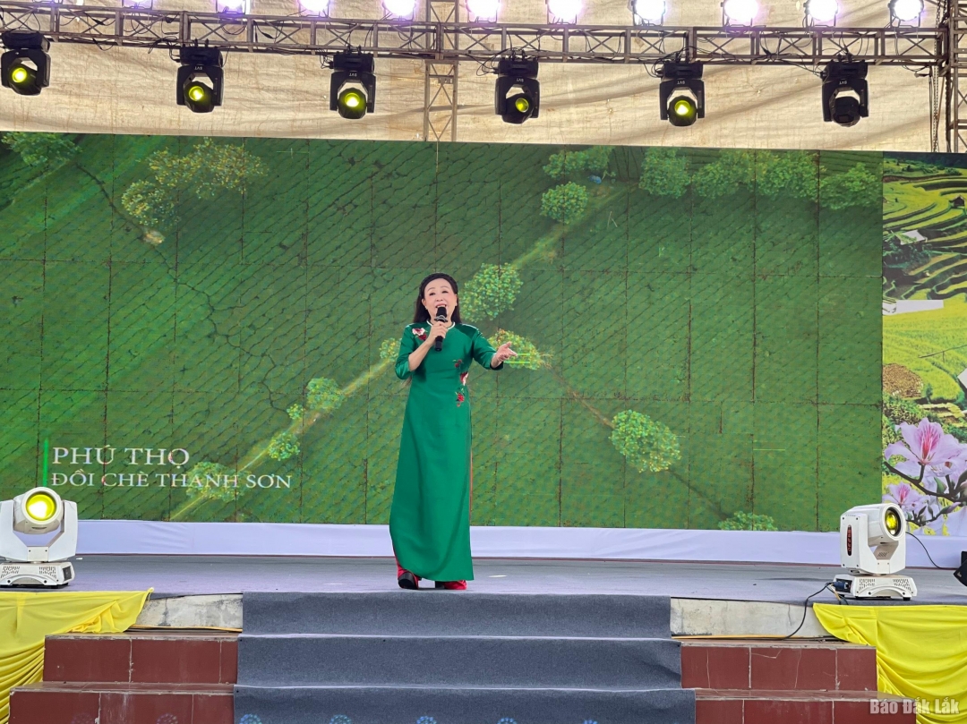 Nghệ sĩ nhân dân Thu Hiền trình bày ca khúc Ca dao em và tôi tại ngày hội.