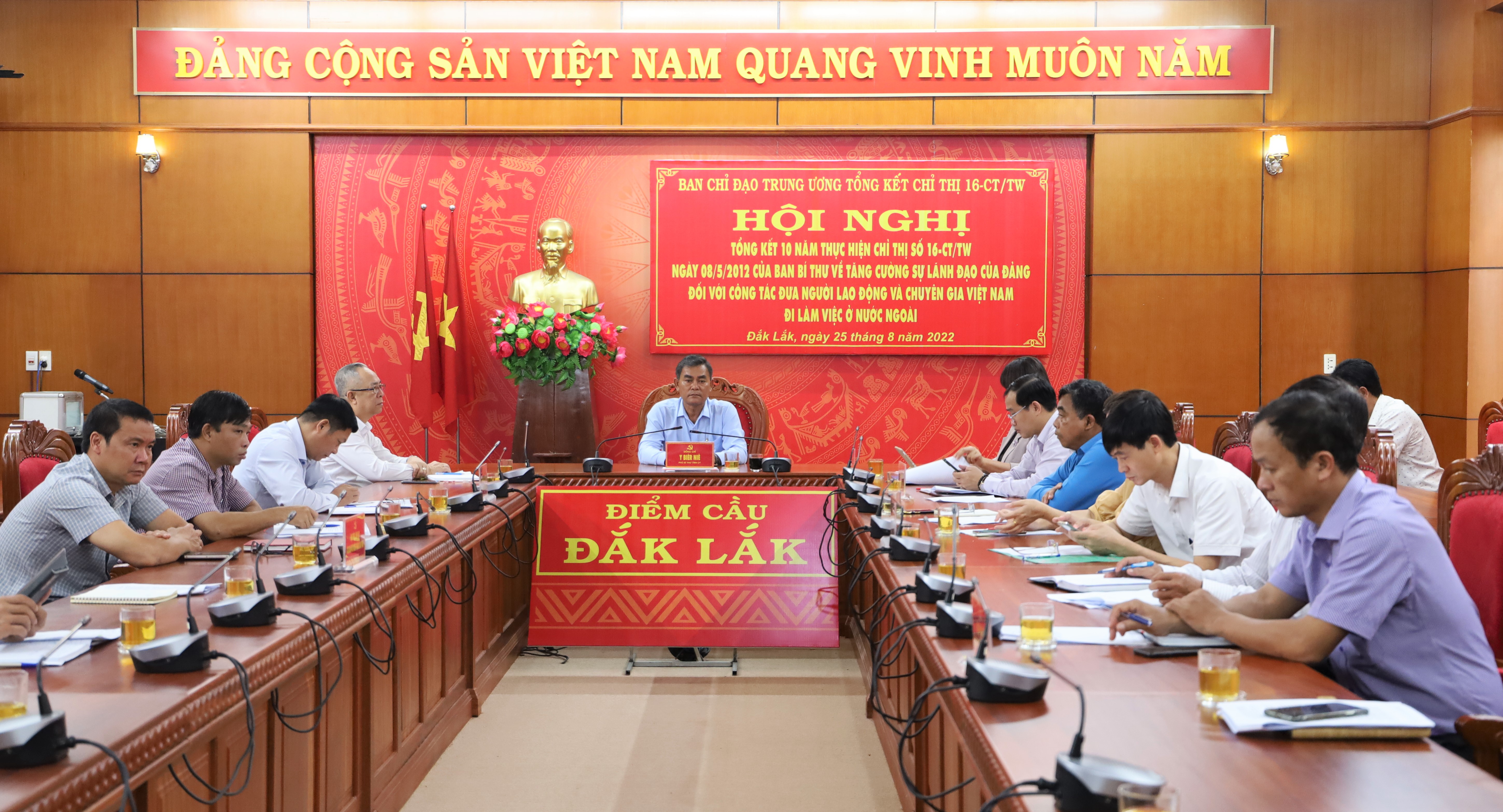 Bộ trưởng Bộ Lao động, Thương binh và Xã hội Đào Ngọc Dung và Phó Trưởng ban Kinh tế Trung ương Đỗ Ngọc An đồng chủ trì Hội nghị. Dự hội nghị tại điểm cầu Đắk Lắk có Phó Bí thư Tỉnh ủy Y Biêr Niê; Phó Chủ tịch UBND tỉnh H’Yim Kđoh cùng đại diện lãnh đạo các sở, ban, ngành hữu quan.