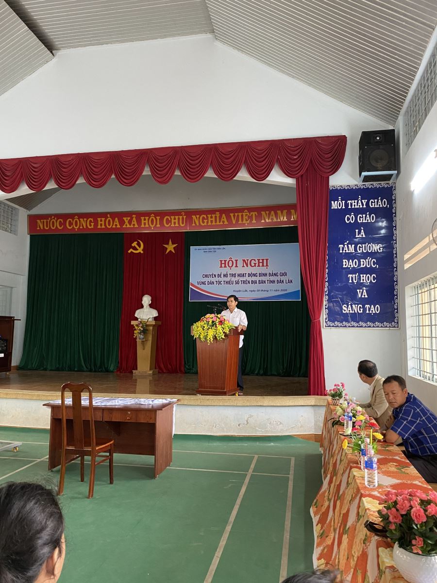 Hoạt động hỗ trợ bình đẳng giới vùng dân tộc thiểu số năm 2020 được tập trung thực hiện với các nội dung chính như: Tổ chức Hội nghị tuyên truyền, phổ biến pháp luật về bình đẳng giới, hôn nhân và gia đình, phòng chống bạo lực trên cơ sở giới ở các Trường Phổ thông Dân tộc nội trú tại 06 huyện trên địa bàn tỉnh, gồm: Lắk, Krông A Na, Krông Bông, Buôn Đôn, Krông Pắc và Ea H’leo; Khảo sát đánh giá thực trạng bất bình đẳng giới và nhu cầu thông tin về bình đẳng giới tại các xã đặc biệt khó khăn, xã đông đồng bào dân tộc thiểu số có nguy cơ mất bình đẳng giới; Xây dựng Mô hình điểm tại xã Đắk Phơi, huyện Lắk “Nói không với bạo lực gia đình”.